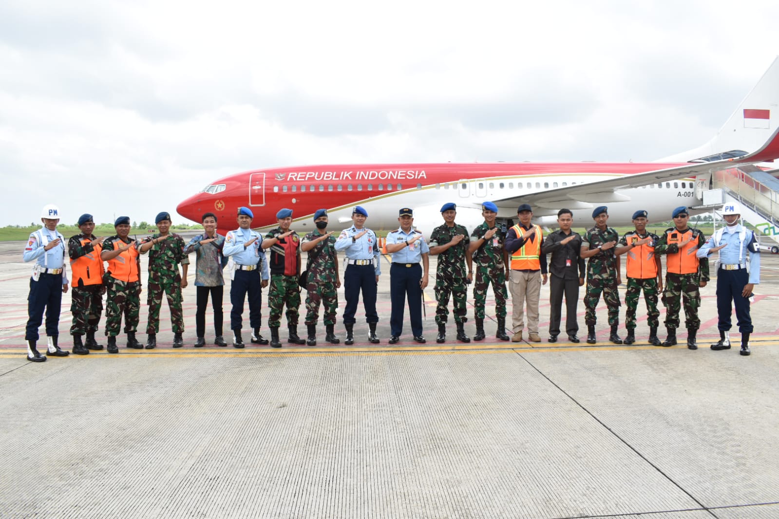 Dalam kunjungan kerja Presiden RI di Jambi, tampak juga tim pendukung penerbangan dan pengamanan dari Lanud Sri Mulyono Herlambang.