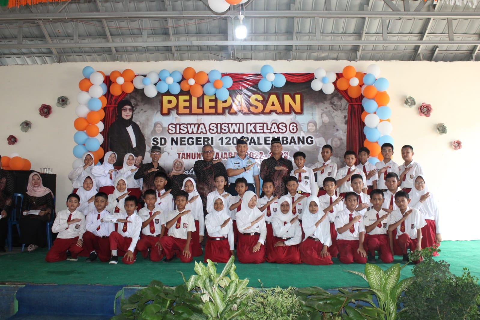 Palembang – Sebanyak 105 peserta didik kelas VI SD Negeri 120 Palembang tahun pelajaran 2022/2023 dilepas kelulusannya oleh Komandan Lanud Sri Mulyono Herlambang Palembang Kolonel Pnb Sigit Gatot Prasetyo, M.M.O.A.S., bertempat di Aula SD Negeri 120 Palembang, Sabtu (3/6/2023).