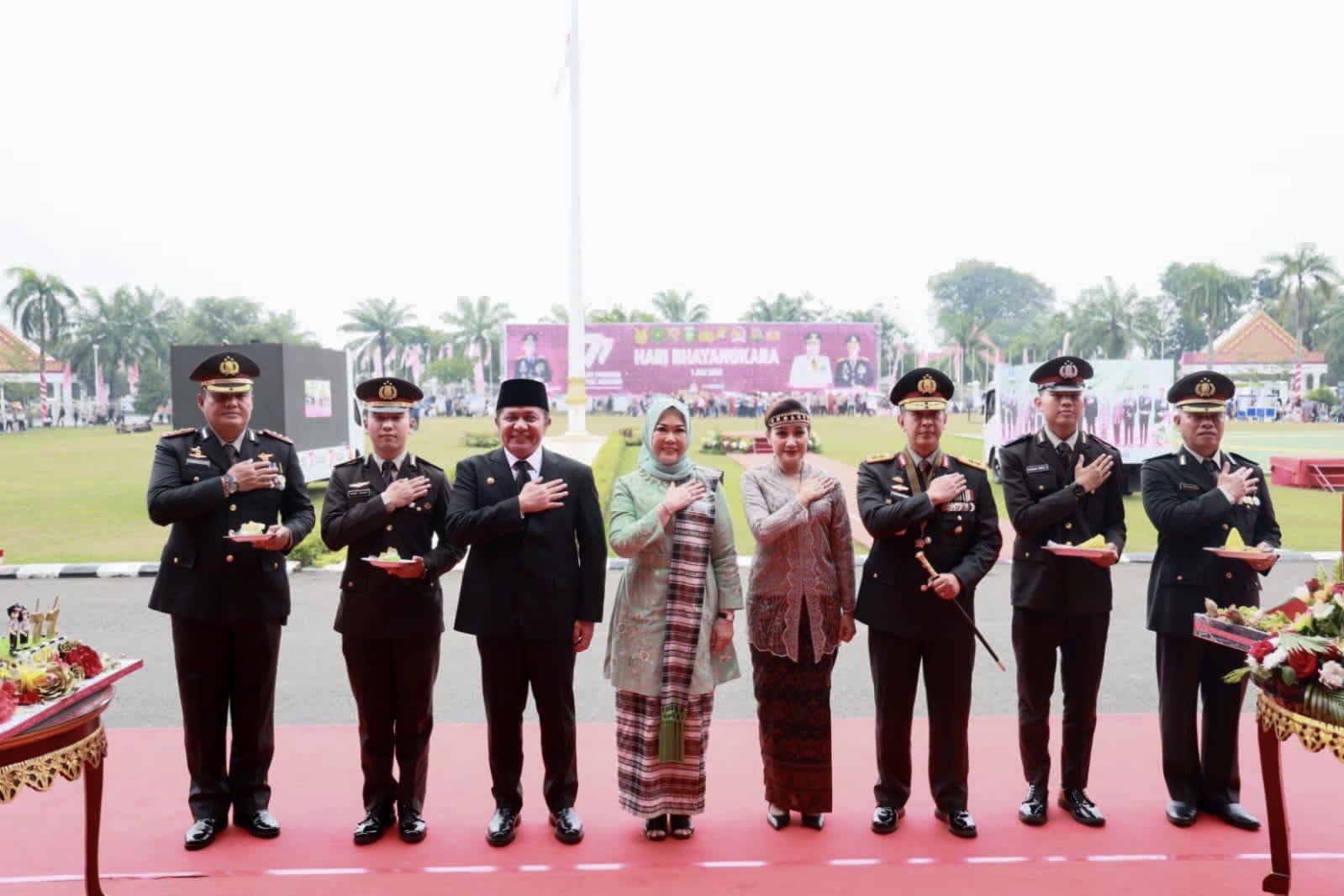“Kita harapkan dengan perayaan yang sangat meriah di Griya Agung ini, dapat mengingat perjuangan para pendahulu. Hingga lahirnya Bhayangkara ini,” kata Kapolda.