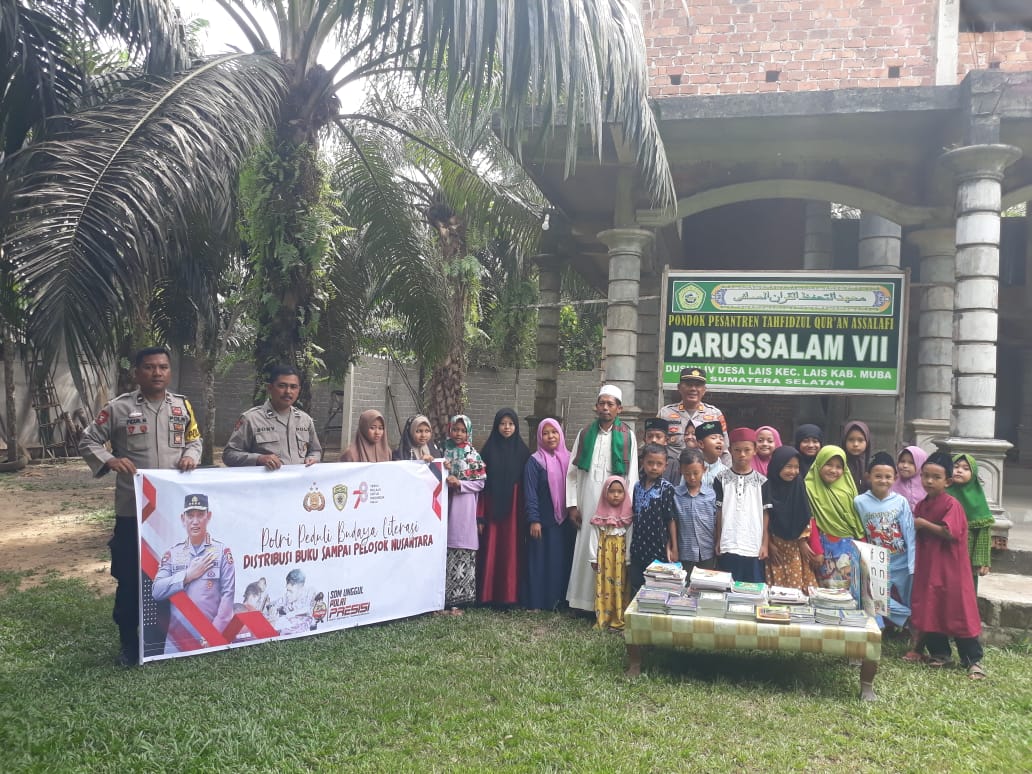 “Ada 4 macam buku yang kita berikan kepada santri di Pondok Pesantren Darussalam VII dan pihak Masjid Al-Muhajirin, diantaranya Al-Qur’an, Iqro’, Kitab Yasin, dan Buku Bacaan,” ujar Kapolsek Lais AKP Hendra Sutisna kepada media ini.
