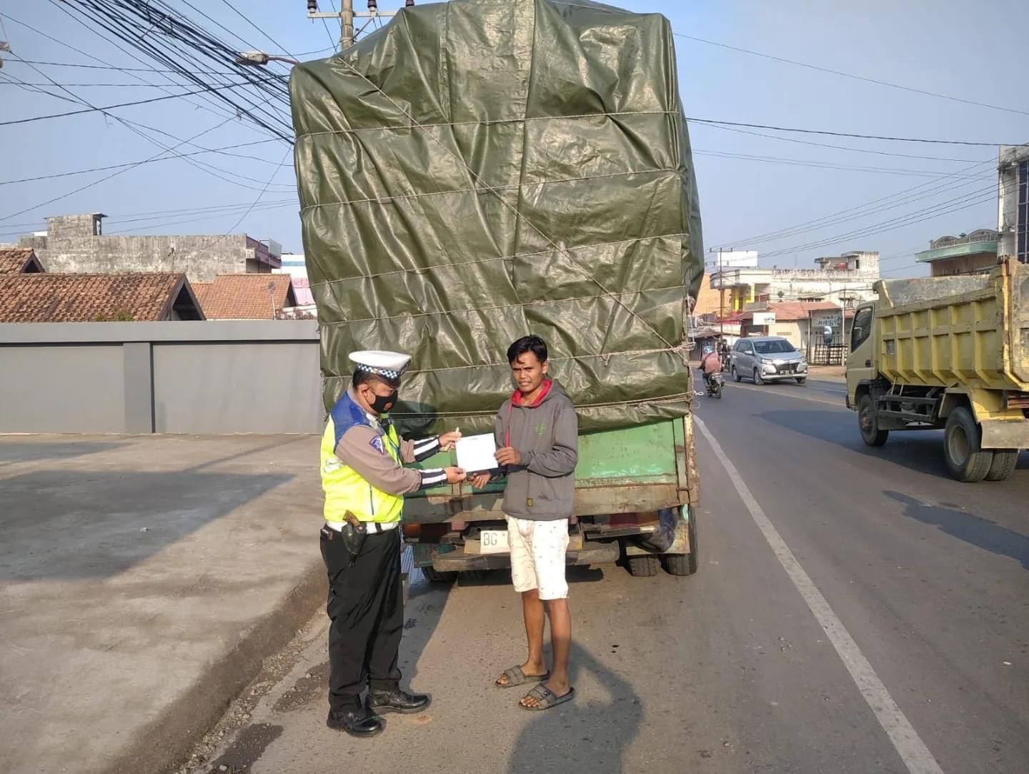 Saat patroli Sat lantas Polres Banyuasin menemukan beberapa truk yang melanggar karena tidak sesuai kelas jalan dan juga ada beberapa truck tidak menutupi muatannya jadi sangat membahayakan takut ada yang jatuh dan terkena kendaraan di belakangnya menyebabkan kecelakaan.