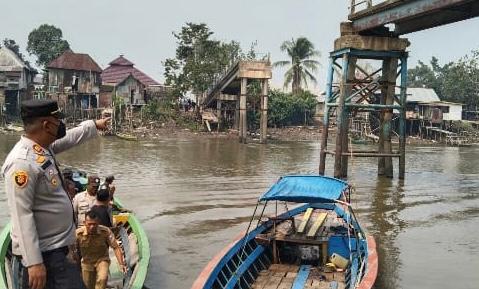 Banyuasin, AksaraNews – Kapolsek Mariana AKP Marzuki SSos bersama Kanit Intelkam Polsek Mariana Iptu Tri Deswiyadi SH, meninjau langsung terkait adanya berita viral jembatan roboh di Desa Merah Mata Kecamatan Banyuasin I Kabupaten Banyuasin, Selasa (26/9) kemarin, pukul 08.30 WIB.