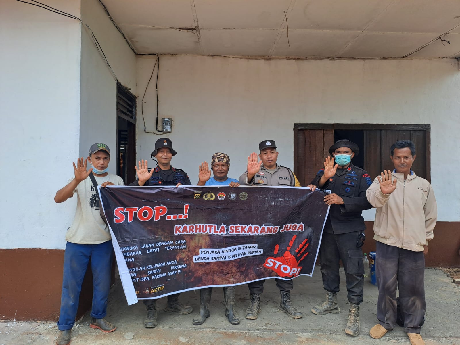 pemasangan spanduk serta sosialisasi Maklumat Kapolda Sumsel tersebut tentang larangan membakar hutan dan lahan, yang dilaksanakan di Desa Rantau Harapan Kecamatan Rantau Bayur Kabupaten Banyuasin, Jum’at (6/10).