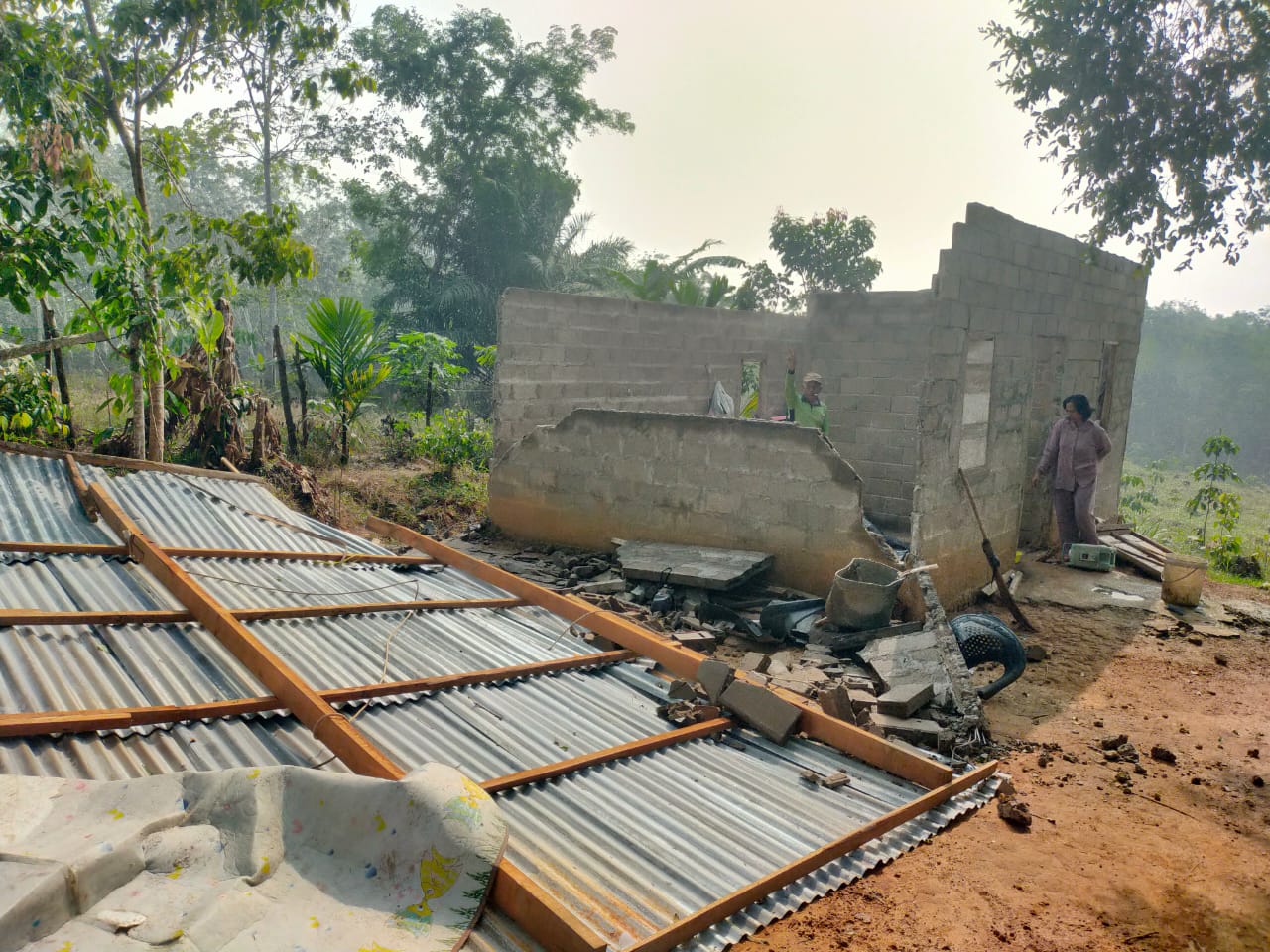 Diterjang Angin, Rumah Warga Desa Talang Kemang Rantau Bayur Roboh