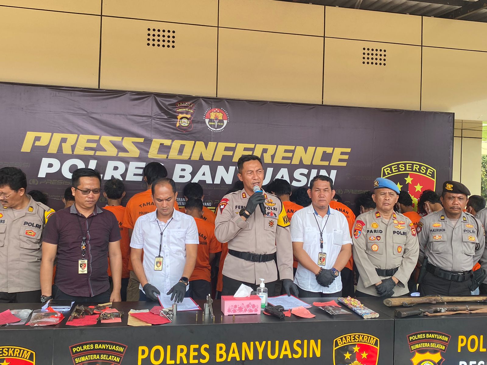 Kapolres Banyuasin menjelaskan, bahwa dari berbagai kasus yang telah diungkap tersebut, dimana Polres Banyuasin berhasil mengamankan tersangka sebanyak 25 orang yang terdiri dari 23 laki laki dan 2 perempuan.