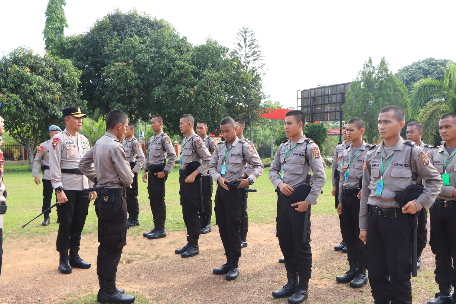 Banyuasin – Kapolres Banyuasin AKBP Ferly Rosa Putra SIK memberikan arahan serta melakukan pemeriksaan sikap tampang siswa latja. Hal ini dilakukan saat setelah pelaksanaan Apel Pagi di Lapangan Apel Polres Banyuasin, Rabu (22/11)