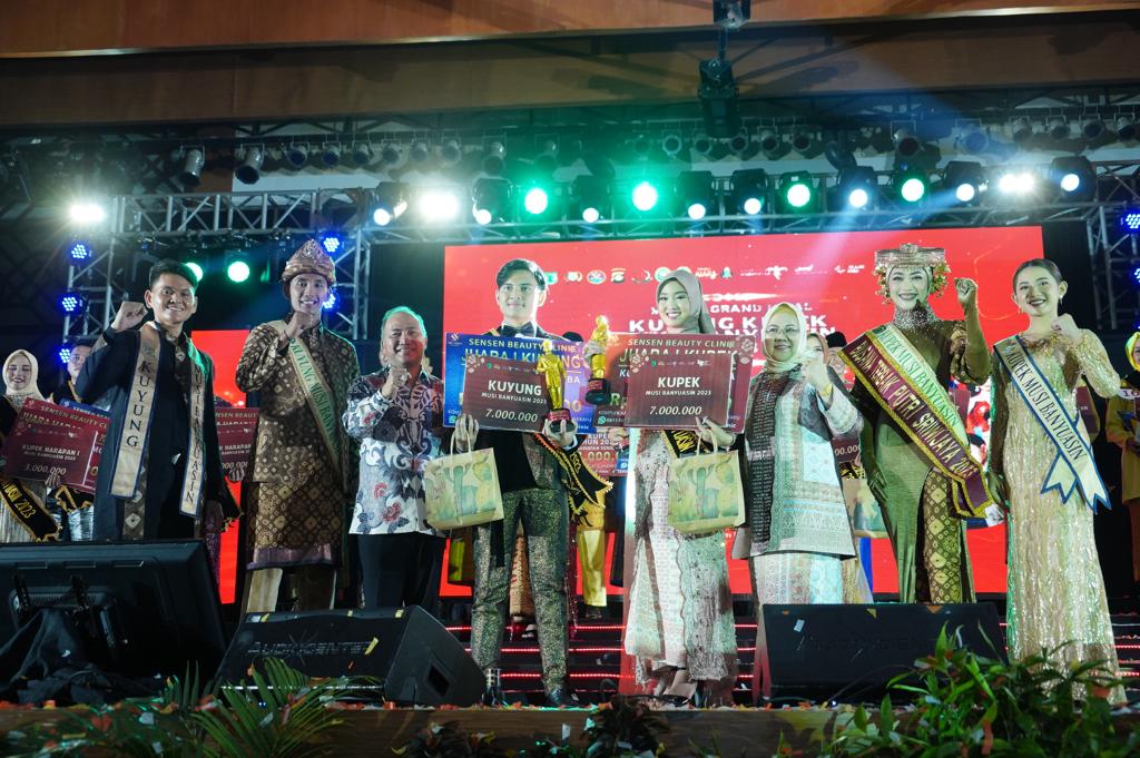 Selanjutnya, juara harapan I Kuyung Kupek Muba 2023 diraih oleh Surya Adi Pratama utusan dari Kecamatan Keluang dan Nia Okta Yuwiar (utusan dari Kecamatan Babat Toman.