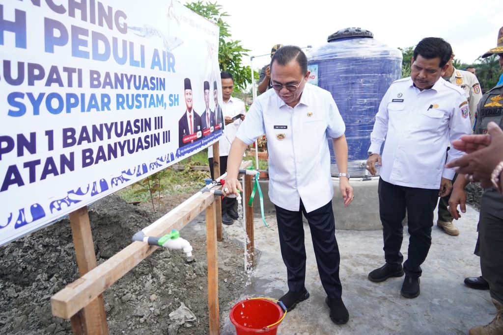 Banyuasin – Setelah melakukan sidak ke RSUD Sukajadi dan Operasi Pasar di Kecamatan Sembawa Pj Bupati Banyuasin H Hani Syopiar Rustam SH kembali melaunching Sekolah Peduli Air kedua di Kabupaten Banyuasin serta peletakan batu pertama pembangunan pagar SMP N 1 Banyuasin III, Rabu(20/12).