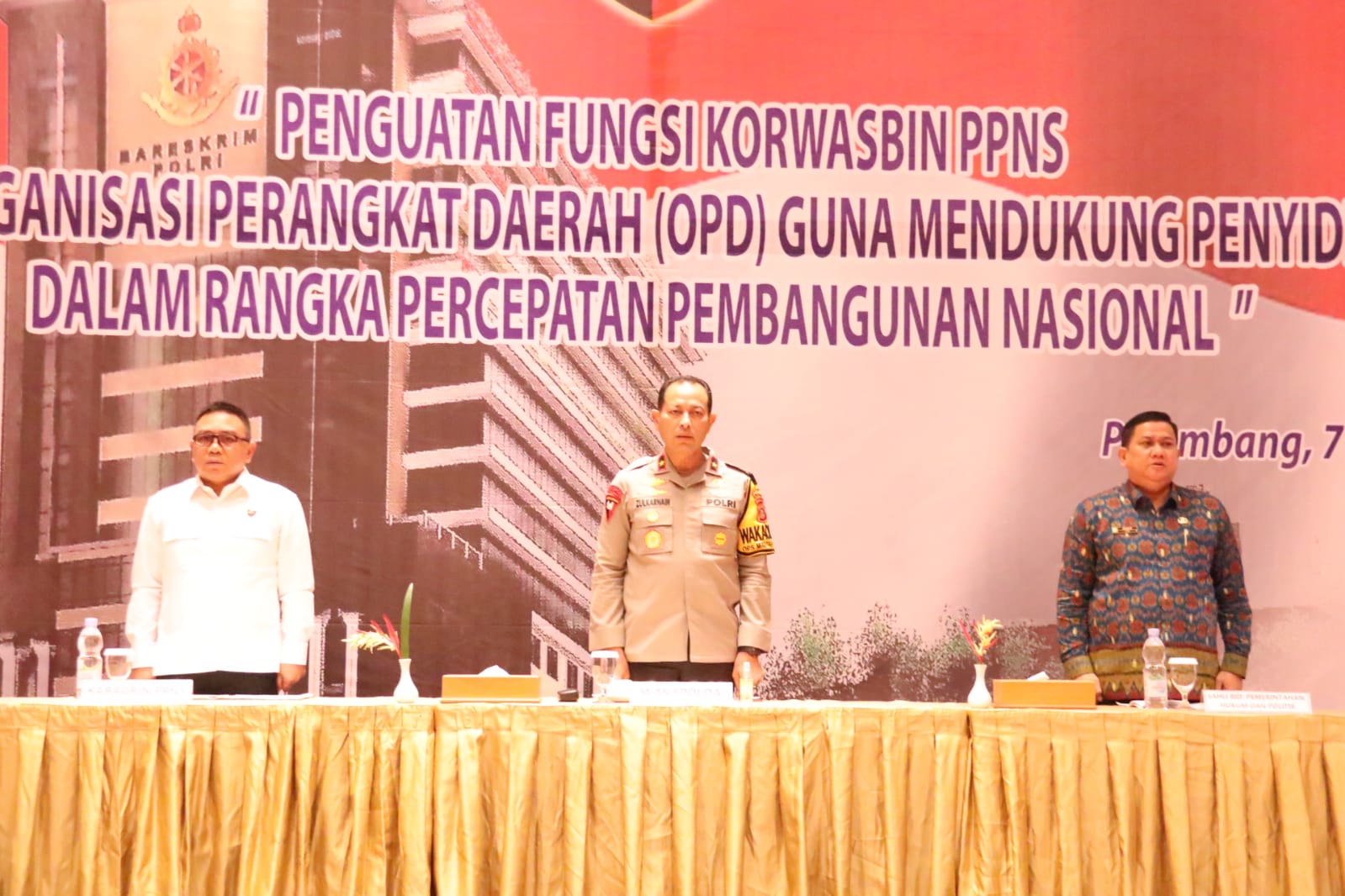 Palembang – Kepolisian Republik Indonesia (Polri) meningkatkan kemampuan Penyidik Pegawai Negeri Sipil (PPNS) se-Provinsi Sumatera Selatan, guna mengimplementasikan Program Kapolri yaitu transformasi menuju Polri yang Presisi, ucap Wakapolda Sumsel Brigjen Pol M.Zulkarnain,SIK,MSi saat membuka Kegiatan Pembinaan Katpuan Penyidik Polri dan PPNS dinas/instansi/Balai tingkat Provinsi Sumsel serta jajaran satpol PP Provinsi dan Kabupaten Kota TA.2024 Kamis,7 Maret 2024 di Ballroom Novotel Palembang