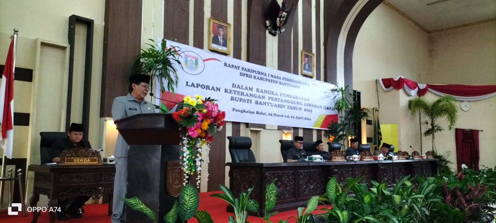 Hal itu diungkapkan juru bicara pansus III M Nasyir saat menyampaikan laporan pembahasan pansus LKPJ Bupati Banyuasin tahun anggaran 2023 dalam rapat paripurna DPRD Banyuasin, di gedung Paripurna DPRD Banyuasin, Senin (1/4).