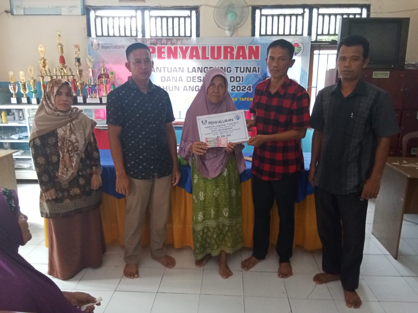Banyuasin – Pemerintah Desa Air Senggeris Kecamatan Suak Tapeh Kabupaten Banyuasin, kembali menyalurkan Bantuan Langsung Tunai Dana Desa (BLT-DD) Kemiskinan Ekstrem kepada Keluarga Penerima Manfaat (KPM), di Kantor Desa setempat, Selasa (30)4).
