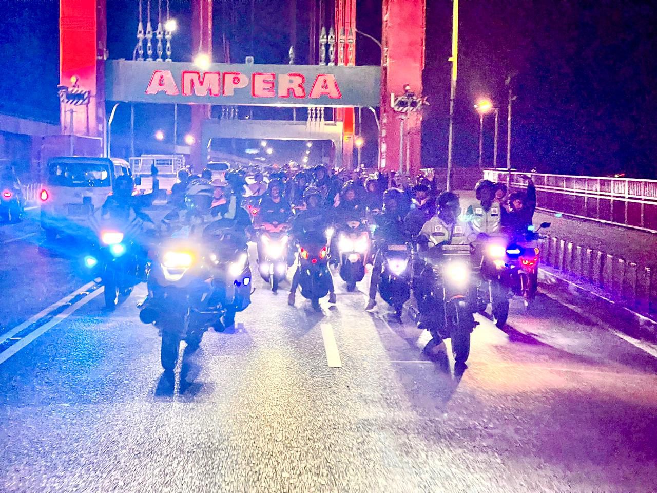 Kegiatan patroli malam ini pun jadi berbeda. Rombongan klub klub motor, bergabung ikut bersama Kapolda Sumsel melaksanakan patroli bersama.