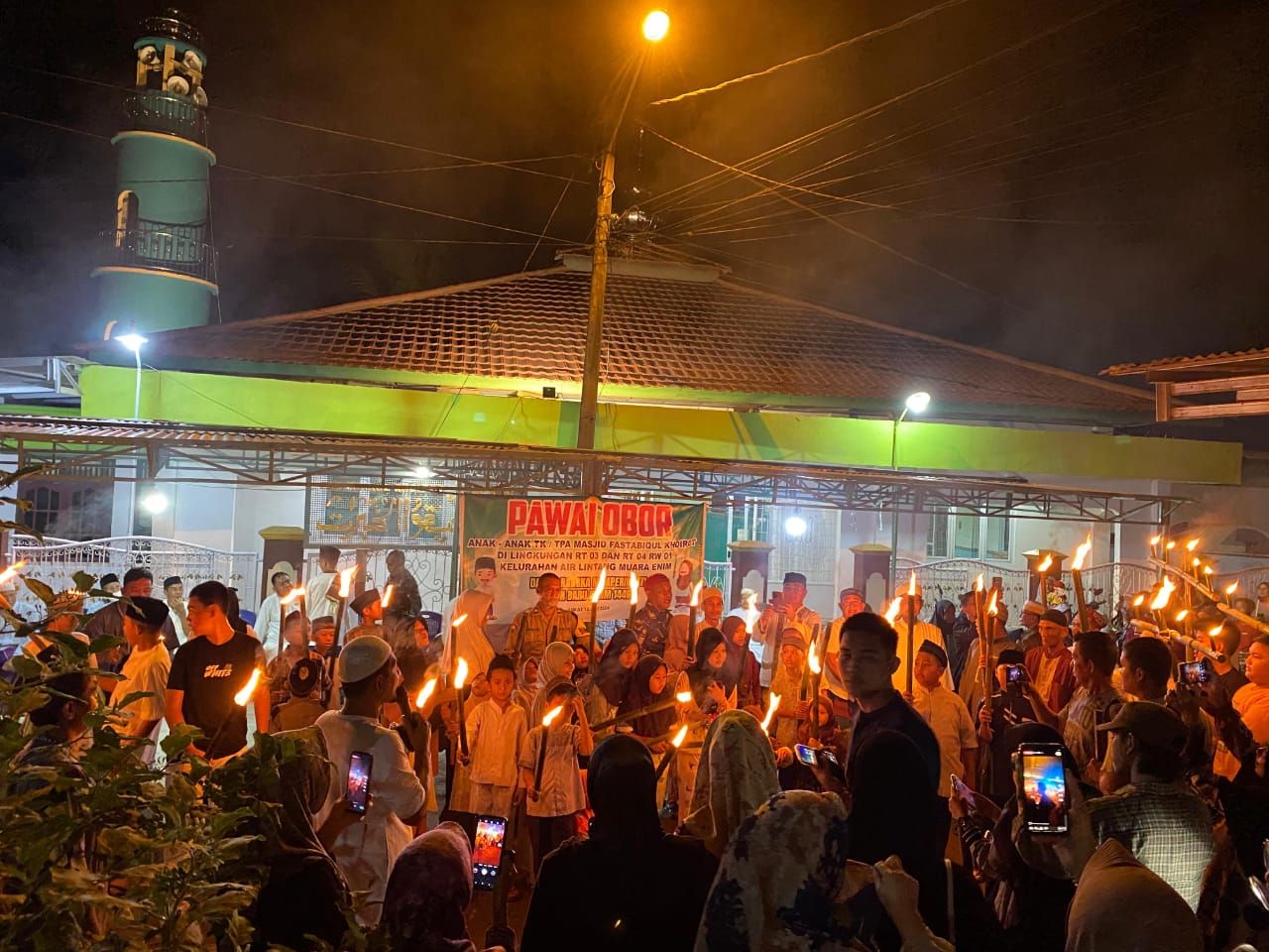 Rayakan Tahun Baru Islam 1446 Hijriyah, Masjid Fastabiqul Khoirot Air Lintang Gelar Pawai Obor.