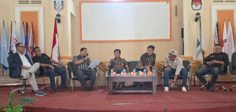 Banyuasin – Komisi Pemilihan Umum (KPU) Banyuaisn menggelar ngobrol pemilihan (ngopi) bersama media yang bertugas di Banyuasin. Acara ini bertempat di Auditorium KPU Banyuaisn, Jalan Talib Wali Kelurahan Pangkalan Balai, Selasa (23/7).