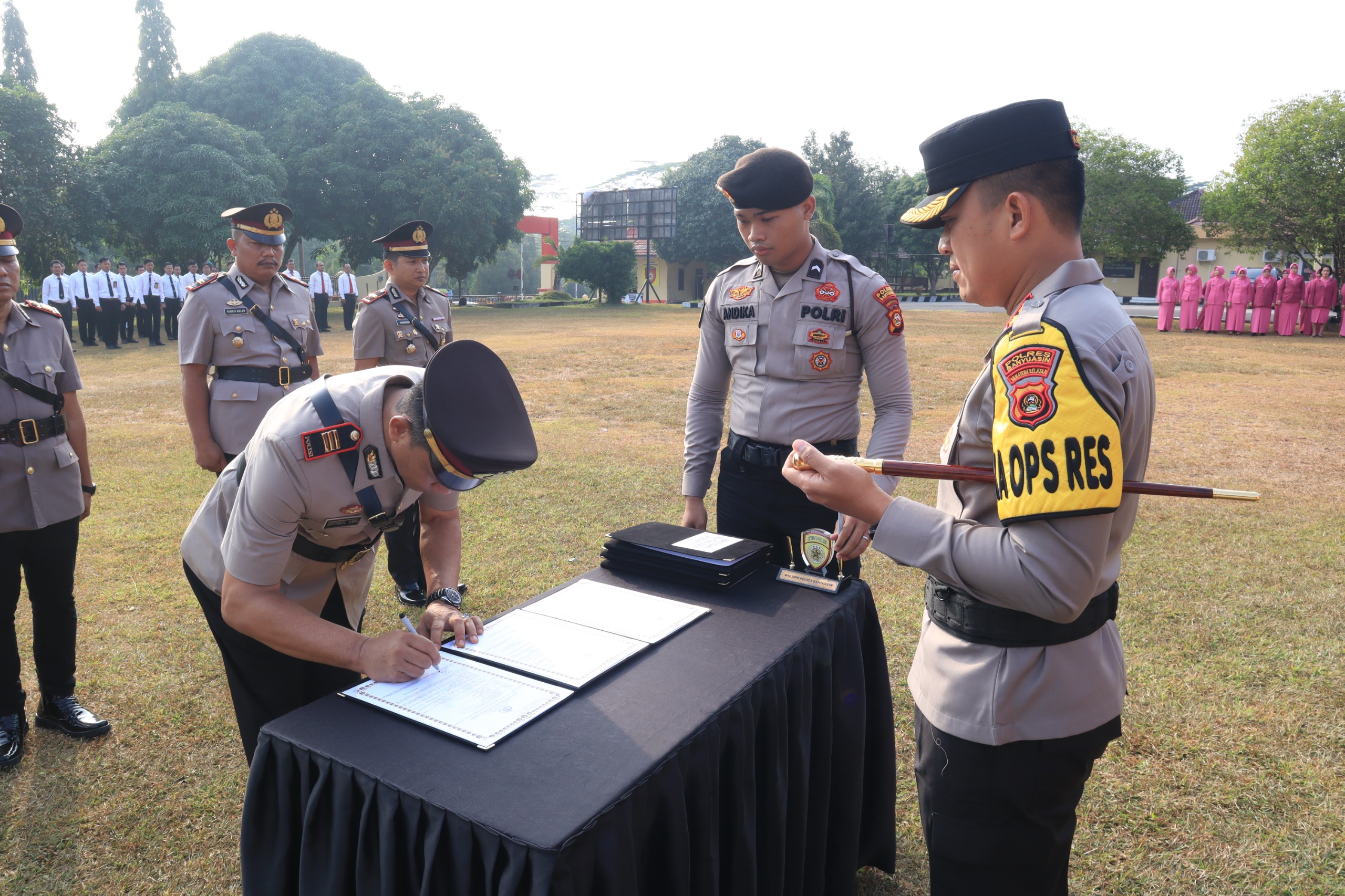 Hadir Wakapolres Banyuasin Kompol Adriansyah SE SIK, Kabag Ops Kompol Muhammad Syamsul Zacri SH MSi, Kabag SDM Kompol Yuzar Heris SIP MSi, Kabag Log Kompol Hasanuddin SE MM, Kabag Ren AKP Ujang Ermansya Mashan, Para Kasat, Para Kasi.