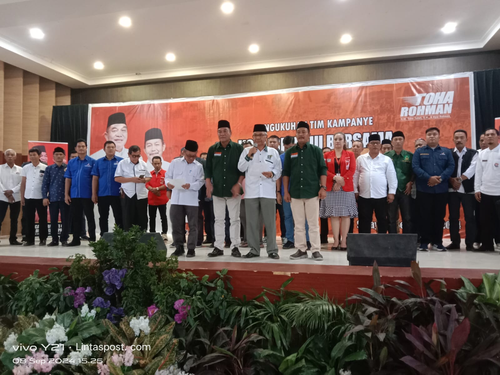 Muba – Guna memastikan Kekompakan dan Kesolidan Pergerakan, Tim Kemenangan Koalisi Maju Bersama H M Toha Tohet – Kyai Rohman resmi dikukuhkan, bertempat digedung Dharma Wanita, Minggu (8/902024).