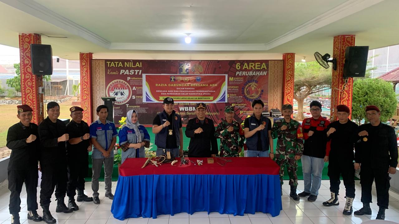 Lapas Kelas IIA Banyuasin berkolaborasi dengan ketiga instansi tersebut bekerjasama melaksanakan apel siaga dan razia penggeledahan kamar hunian warga binaan.