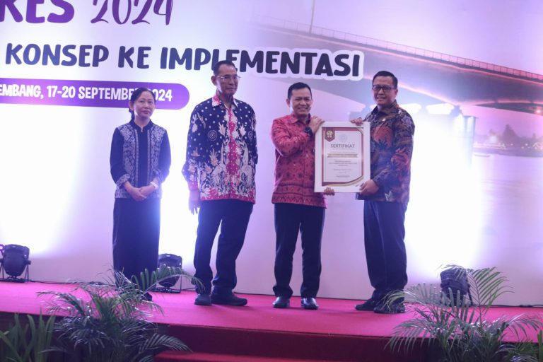 Piagam penghargaan ini diserahkan langsung oleh Penjabat (Pj) Gubernur Sumatera Selatan, Elen Setiadi SH MSE dalam malam pertemuan nasional ADINKES di Beston Hotel, Palembang, Selasa malam (18/9).