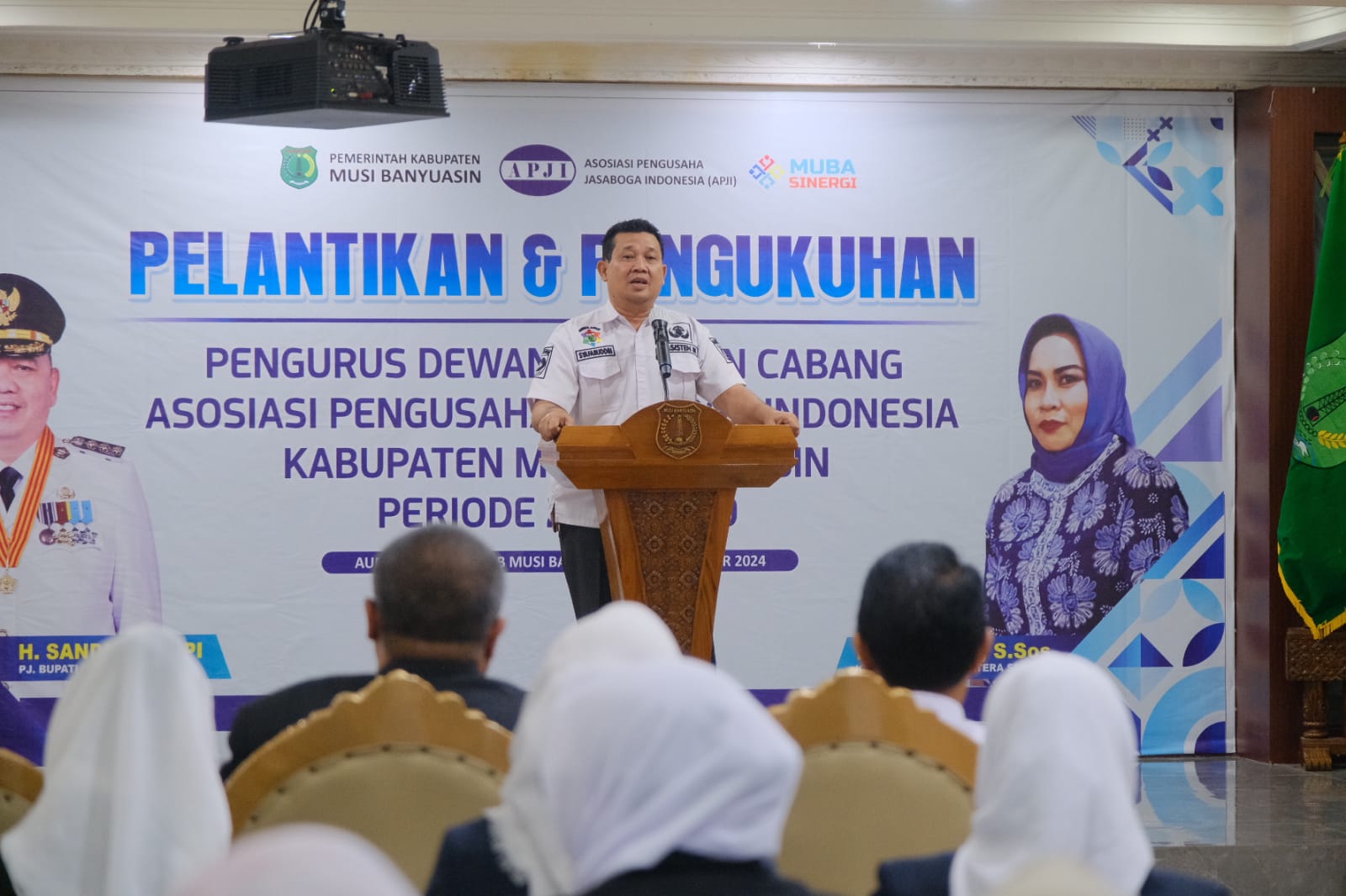 Ketua DPD Asosiasi Pengusaha Jasaboga Indonesia Kabupaten Muba Achamd Baidowi dan Pengurus DPC APJI Kabupaten Musi Banyuasin dilantik secara langsung Ketua DPD APJI Provinsi Sumsel Hj Sulaiha SSos. Serta dilanjutkan dengan kata pengukuhan oleh Pj Bupati Muba H Sandi Fahlepi melalui Asisten Administrasi Umum Setda Muba Drs Safaruddin.