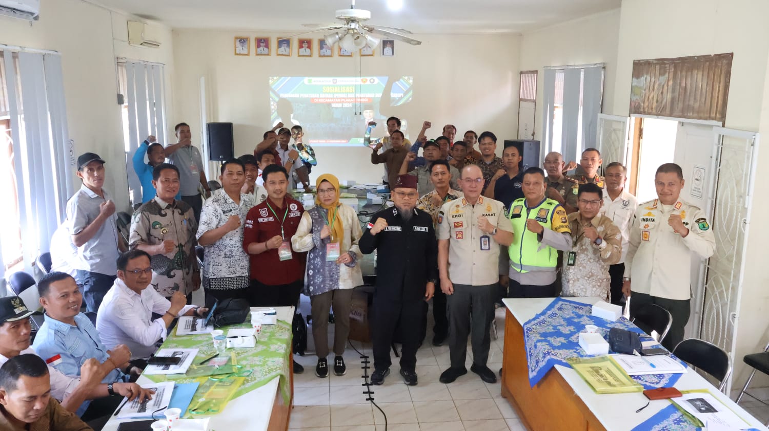 Bertempat di Aula Kantor Camat Plakat tinggi, para peserta yang berasal dari kepala desa (Kades), badan permusyawaratan desa (BPD), lembaga perwakilan masyarakat (LPM) masyarakat se kecamatan plakat tinggi, Musi Banyuasin mendapatkan sosialisasi mengenai substansi materi Perda dan Perbup yang dari narasumber langsung oleh Asisten Pemerintahan dan Kesra Kabupaten Musi Banyuasin H Yudi Herzandi SH MH, Kasat Pol PP Muba Erdian syahri S. Sos M.Si, Indita Purnama SSos MM Kabid Penegakan Perda Satpol PP dan PPNS Satpol PP Muba serta dihadiri Camat plakat tinggi H Muardi A. Rasid SP.d MM.