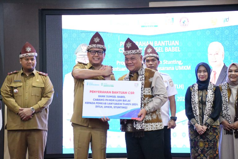 Penyerahan simbolis Bantuan CSR (Corporate Social Responsibility) ini diserahkan Direktur Utama Bank Sumsel Babel, Ahmad Syamsudin, yang diterima langsung oleh Pj Bupati Banyuasin Muhammad Farid S.ST MSi didampingi Pj Ketua TP-PKK Adhitya Trinia Apriliani S.STP MSi dan Ketua Forum CSR Banyuasin Ir. Erwin Ibrahim ST MM MBA Asean IPU Eng.
