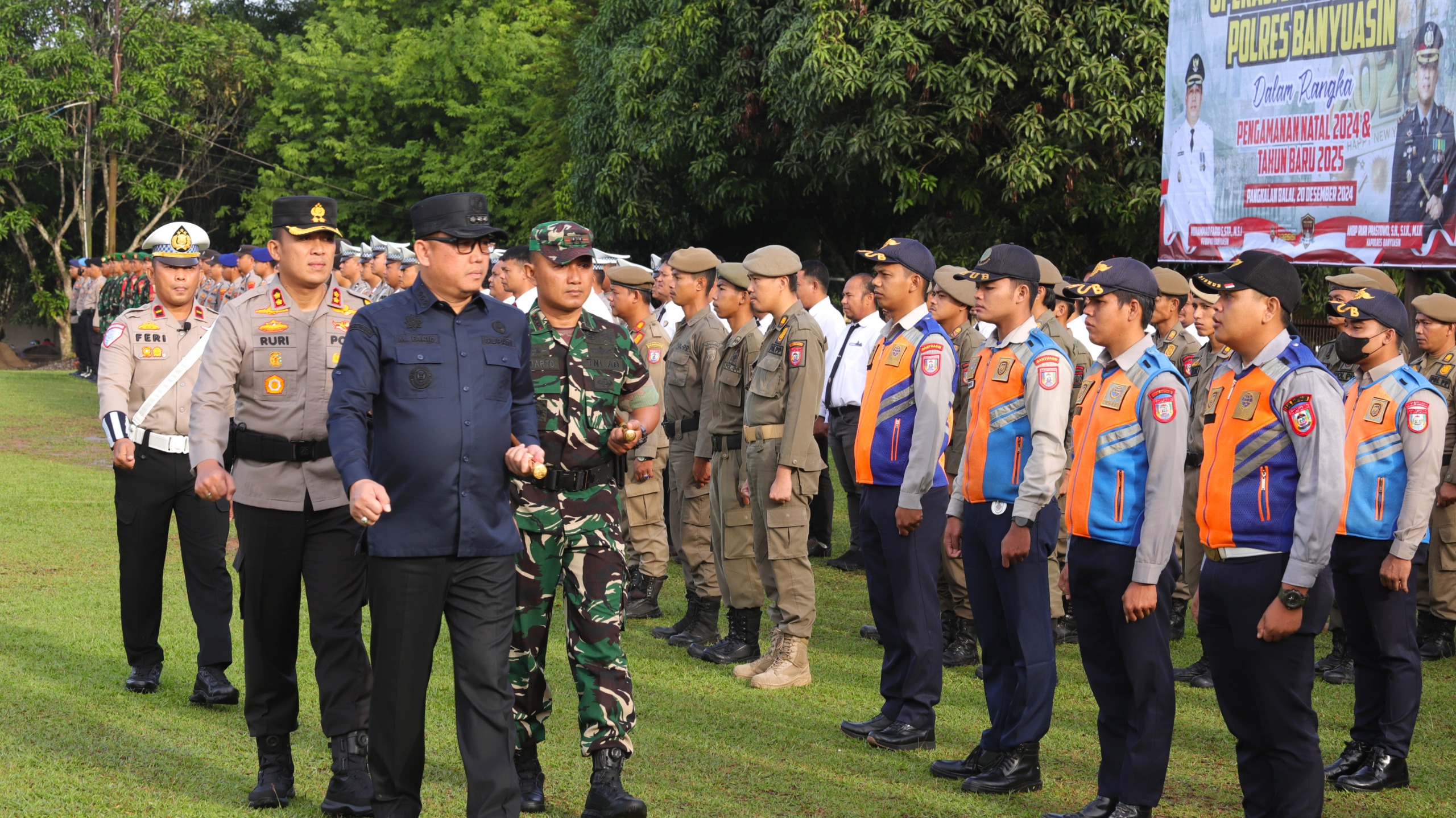 Banyuasin – Polres Banyuasin, Polda Sumsel, menggelar Apel Gabungan Operasi Lilin Musi 2024 di lapangan Apel Mapolres Banyuasin, Jum’at (20/12). Dengan melibatkan berbagai unsur, termasuk Dinas Perhubungan Banyuasin, BPBD, Satpol PP, Kodim 0430/Banyuasin, serta instansi lainnya.