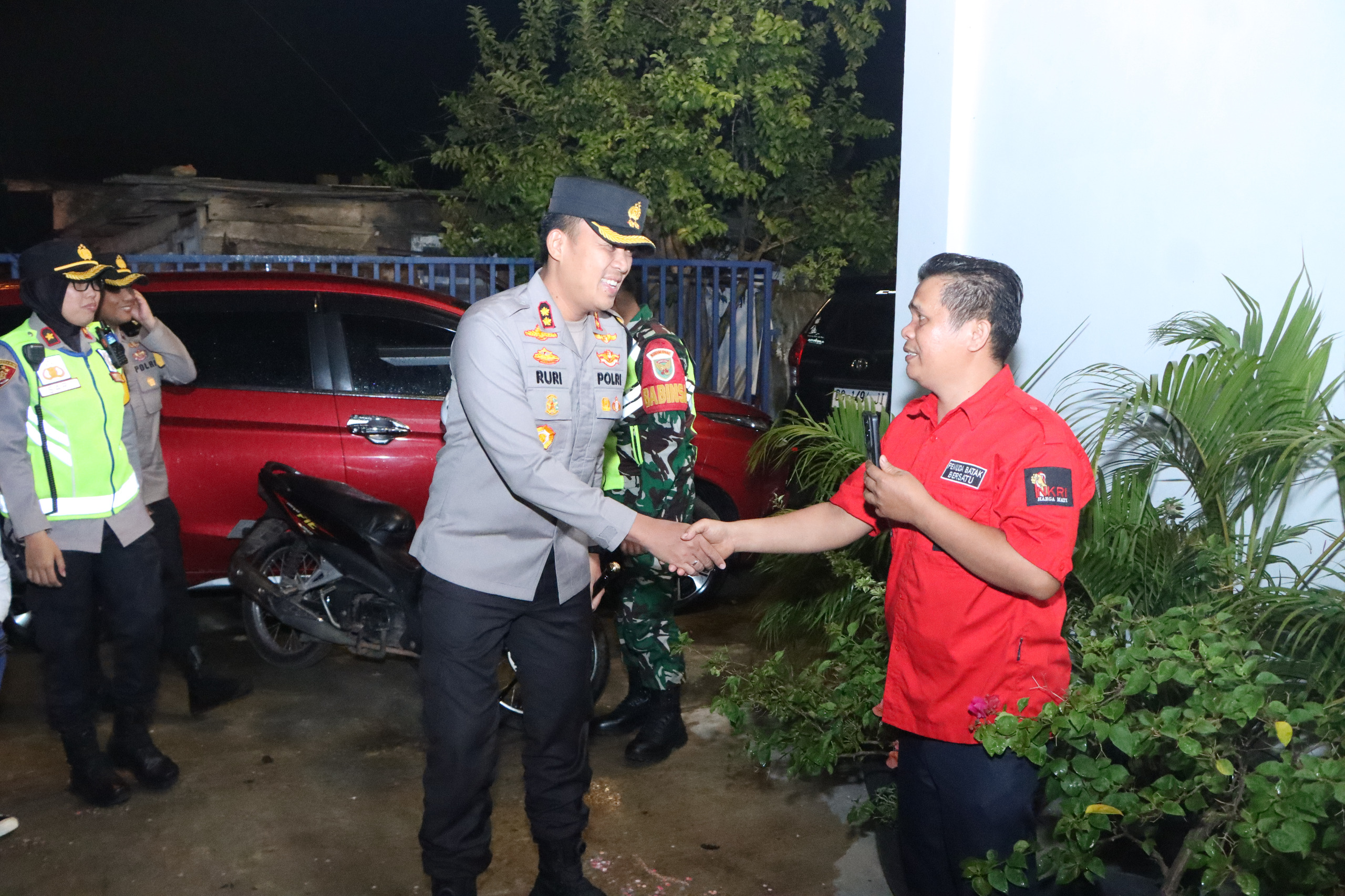 Salah satunya, Kapolres Banyuasin AKBP Ruri Prastowo melakukan pengecekan Personil Polsek Talang Kelapa yang sedang melakukan pengamanan di Gereja Huria Kristen Batak Protestan (HKBP), di Jalan Palembang – Betung KM 13, RT 01 RW 01, Kelurahan Sukajadi, Kecamatan Talang Kelapa, Kabupaten Banyuasin, Selasa (24/12) pukul 17.00 WIB.