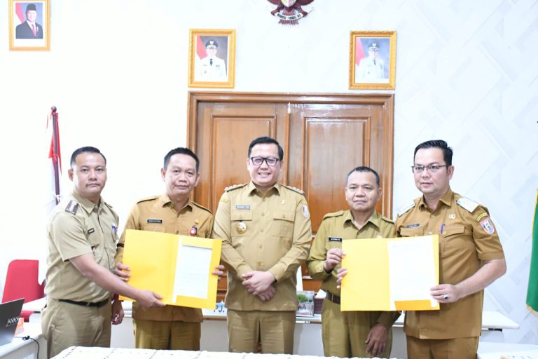 Banyuasin – Pj Bupati Banyuasin Muhammad Farid S.STP MSi didampingi Asisten I Setda Banyuasin Dr Ir Izro Maita MSi dan Kepala Perangkat Daerah (KPD) Banyuasin melaksanakan Sosialisasi dan Serah terima Akses aplikasi Sistem Keuangan Desa (Siskeudes) versi 2.0.