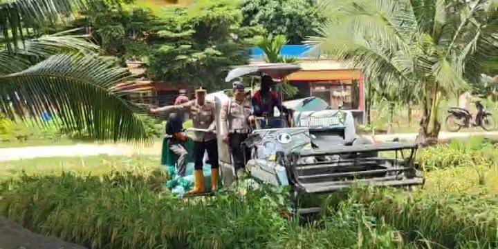 melaksanakan panen raya padi di lahan milik Polsek Tanjung Lago yang berlokasi di Jl. Tanjung Api-Api Desa Banyu Kecamatan Tanjung lago, Kabupaten Banyuasin, Selasa (12/2).