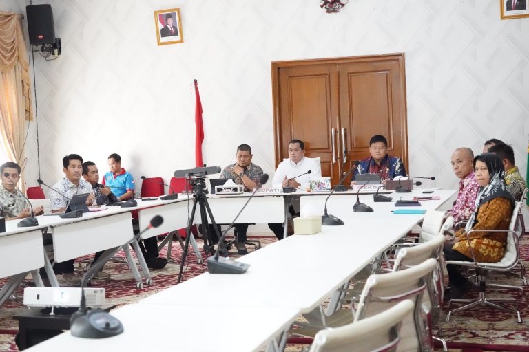 didampingi Sekretaris Daerah Kabupaten Banyuasin Ir Erwin Ibrahim ST MM MBA IPU ASEAN Eng dan Kepala Dinas Perkimtan Kabupaten Banyuasin Ir H M Riyan Aditya Saputra MT IPM ASEAN, di Ruang Rapat Guest House Rumah Dinas Bupati Banyuasin, Jumat (14/3).
