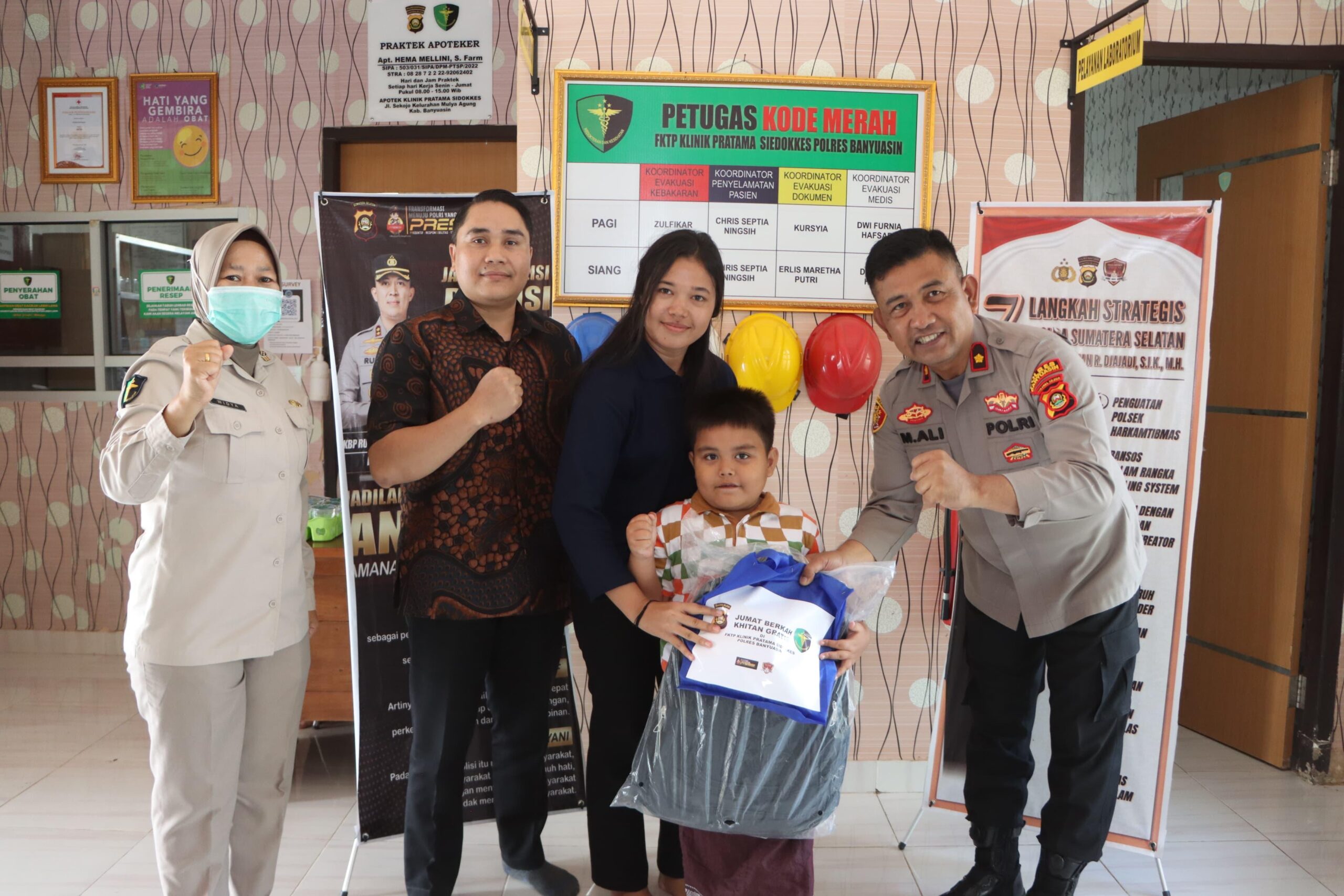 Pada Jumat ini, dua anak dari keluarga di Kabupaten Banyuasin berhasil menjalani prosedur khitan tanpa biaya. Prosedur medis ditangani secara profesional oleh dr. Dapid Aryanto, dokter berpengalaman yang bertugas di lingkungan Polres Banyuasin dan perawat FKTP Klinik Pratama Polres Banyuasin.
