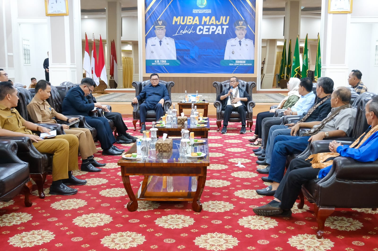 Sekayu – Bupati Musi Banyuasin (Muba) H M Toha SH menerima audiensi Ketua Umum Badan Pengurus Pusat Gabungan Pelaksana Konstruksi Nasional Indonesia (BPP Gapensi), Andi Rukman Nurdin Karumpa SE beserta jajaran, di Guest House Griya Bumi Serasan Sekate, Selasa (8/7/2025).