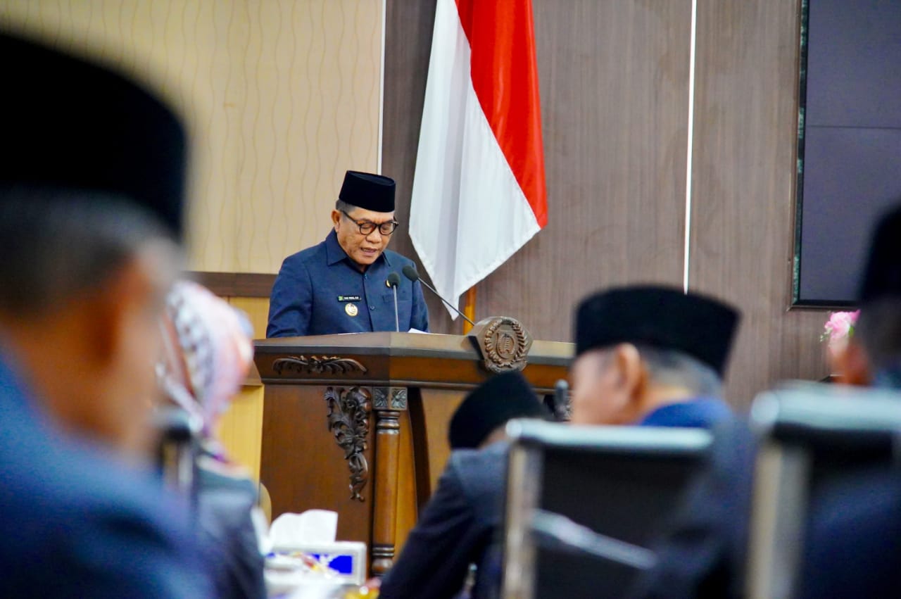 Sekayu – Bupati Musi Banyuasin H M Toha SH menghadiri Rapat Paripurna Dewan Perwakilan Rakyat Daerah (DPRD) Kabupaten Musi Banyuasin dalam rangka penyampaian jawaban/tanggapan Bupati terhadap Pemandangan Umum Fraksi-Fraksi DPRD Kabupaten Muba. Rapat ini digelar di Ruang Rapat Paripurna DPRD Muba, Selasa (8/7/2025).