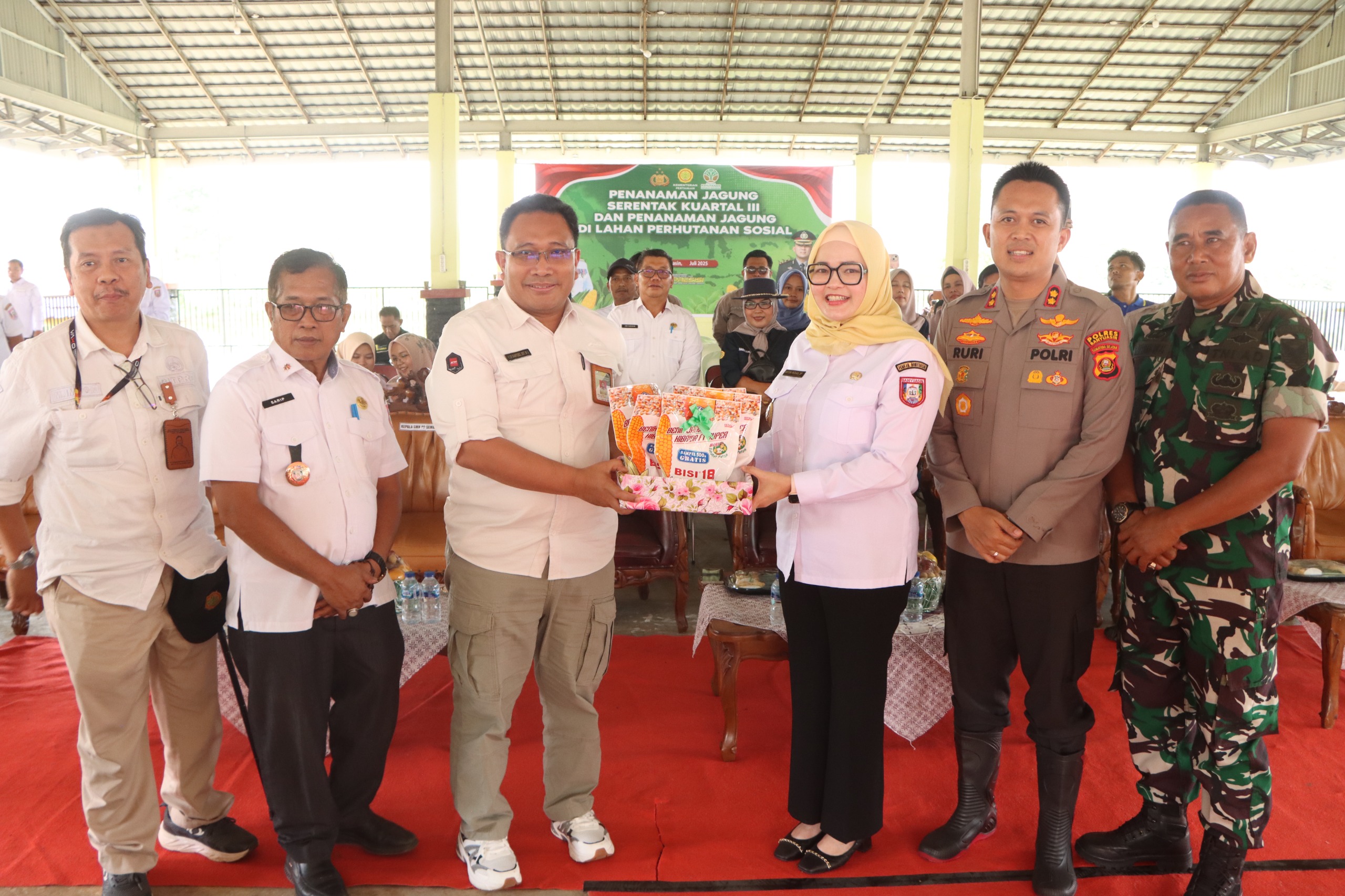 “Hari ini Polres Banyuasin beserta Forkopimda yang diwakili Ibu Wakil Bupati, melaksanakan penanaman jagung kuartal ketiga serentak seluruh Indonesia yang terpusat di Grobogan, Jawa Tengah,” ujar Kapolres Ruri.
