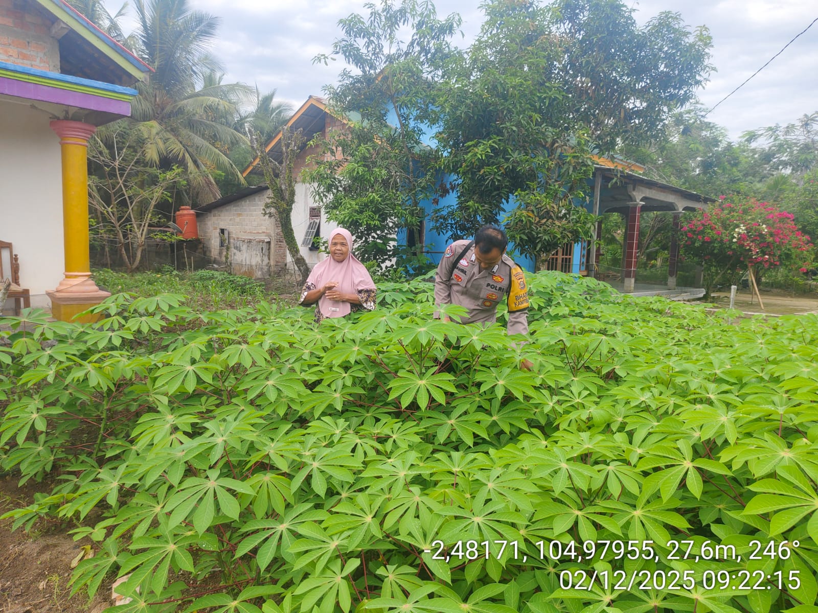 Sebagai langkah nyata, Bripka Sahril memantau dan mendukung langsung penanaman komoditas pangan singkong di lahan milik warga setempat, Bapak Tarjo, dengan luas lahan mencapai 30 meter kubik.