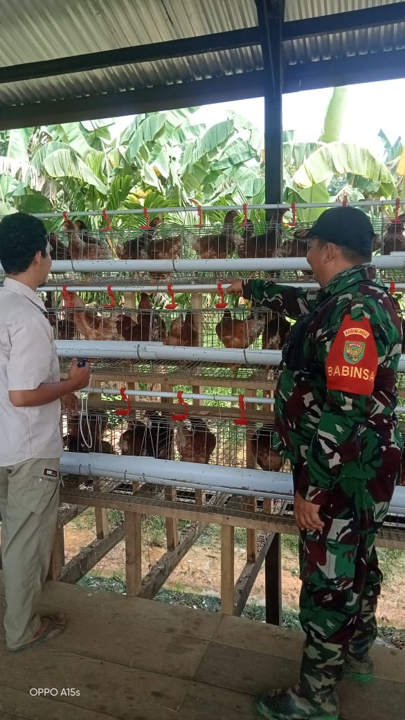 Dalam kunjungannya tersebut Babinsa Serka Oki Brusli ikut membantu mengecek ayam dan sekaligus saling berbagi ilmu tentang cara memelihara ayam petelur yang benar agar bisa mendapatkan hasil maksimal.