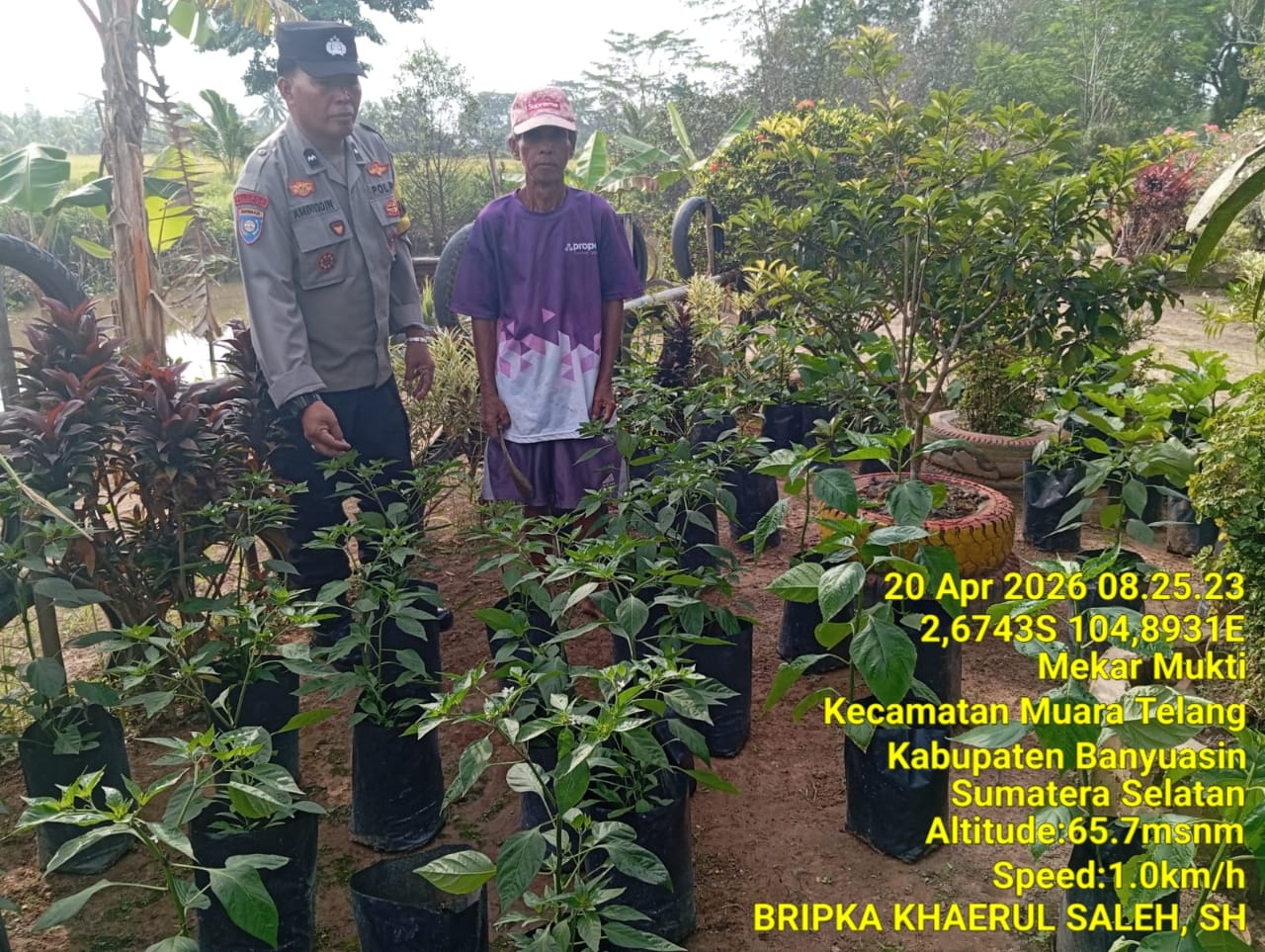 Banyuasin – Dalam upaya mendukung program strategis nasional di bidang ketahanan pangan, Bhabinkamtibmas Polsek Muara Telang menggelar kegiatan himbauan dan penggerakan masyarakat di Desa Telang Jaya, Kecamatan Muara Telang, Kabupaten Banyuasin, Senin (20/4).