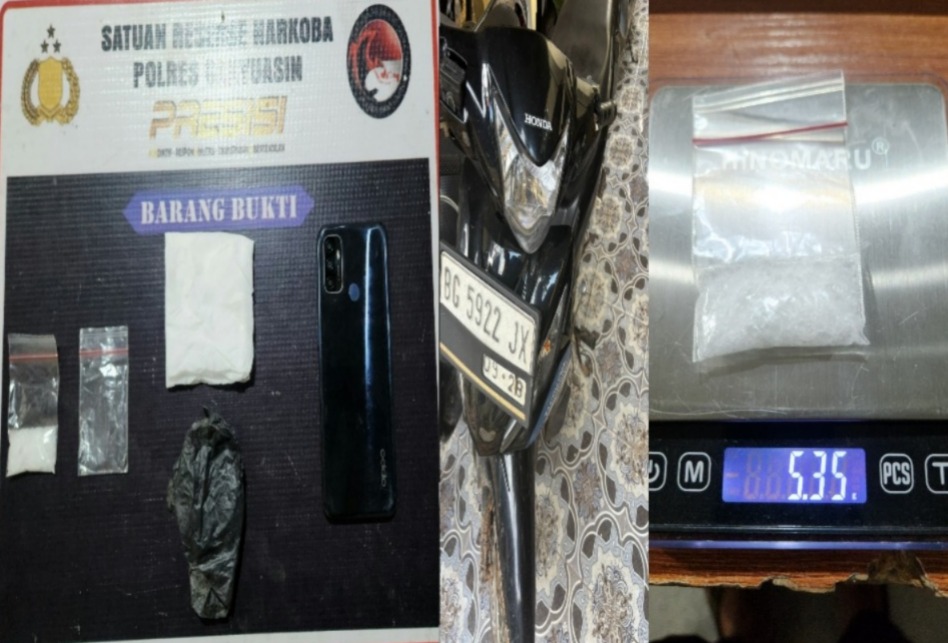 Dari tangan pelaku, petugas menyita barang bukti berupa satu paket narkotika jenis sabu dengan berat bruto 5,35 gram.